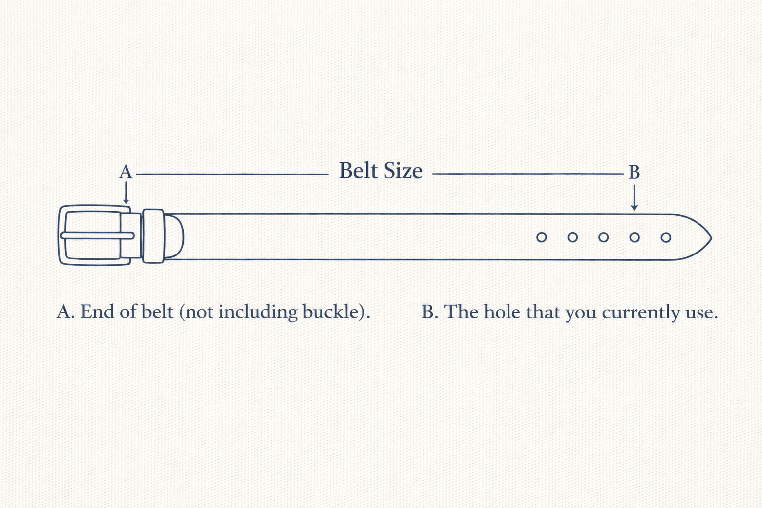 Step 2 - Measure from the end of the buckle (As shown on A on the diagram) to the hole you use most often (As shown on B).