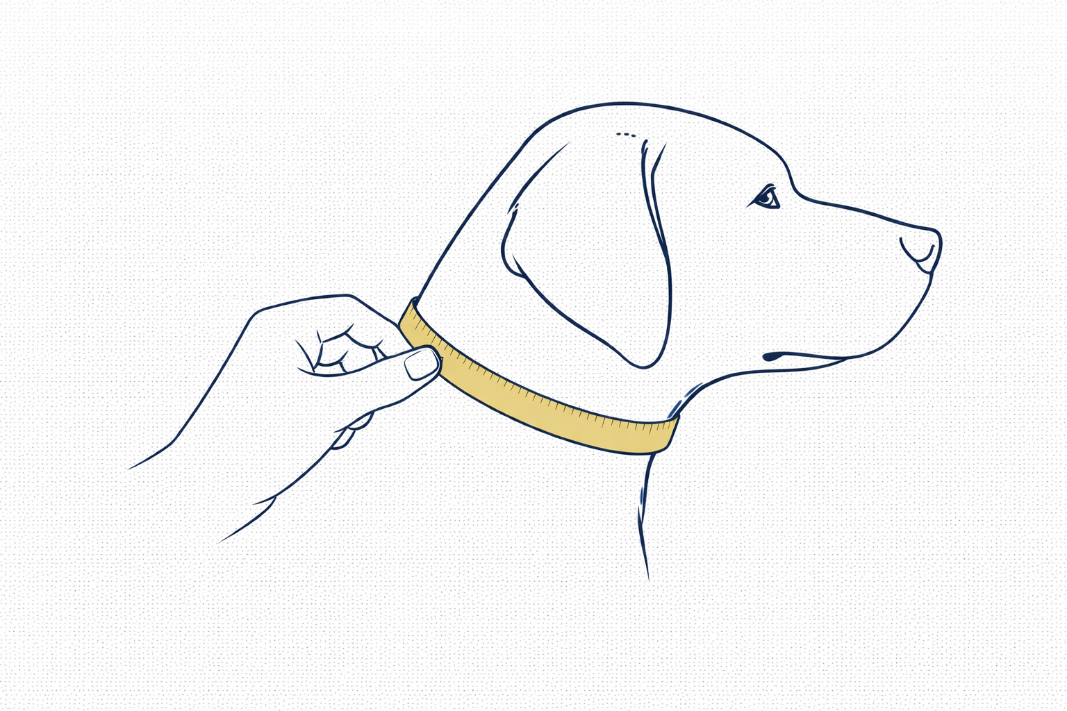 Step 1 - Wrap a flexible tape measure around the base of your dog’s neck — the spot where the collar naturally sits. Make sure the tape is snug but not tight.